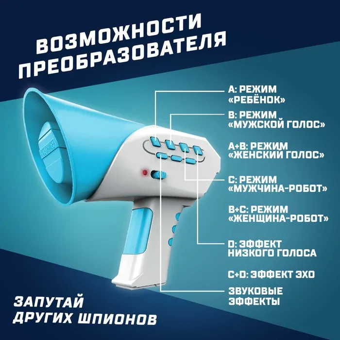 Преобразователь голоса поможет юному шпиону при выполнении очередного спецзадания. Устройство умеет менять голоса и комбинировать различные эффекты!