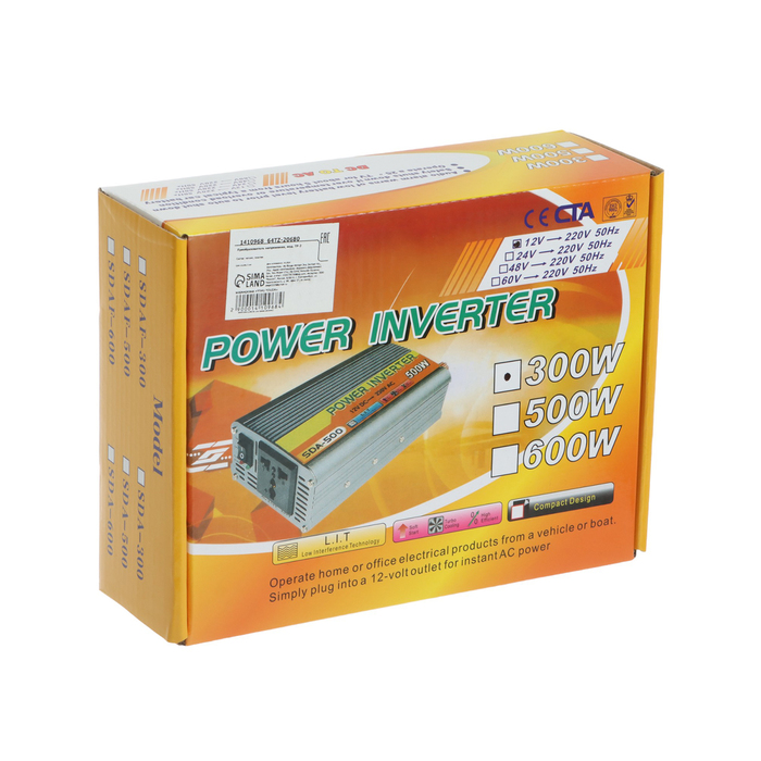 Портативный преобразователь напряжения предназначен для питания электроприборов от аккумулятора автомобиля. Инвертор позволит подключить необходимые в дороге и на отдыхе устройства и гаджеты (ноутбук, телевизор, ПЗУ и прочее). Оснащён защитой от короткого замыкания, перегрева и перегрузки.