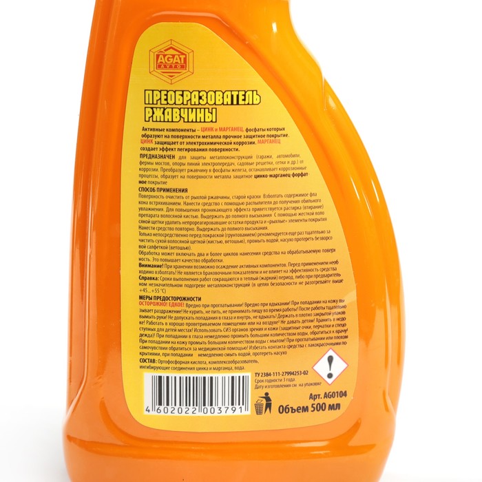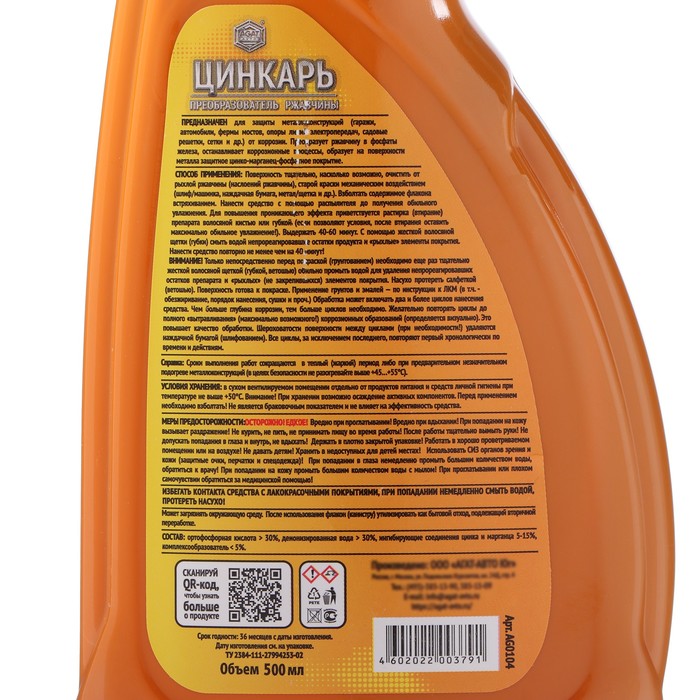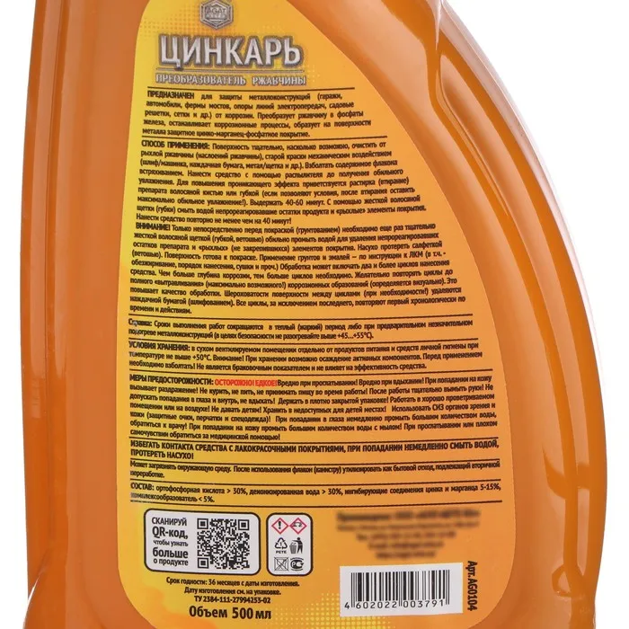 Преобразователь ржавчины ЦИНКАРЬ, 0.5 л с распылителем — Характеристики