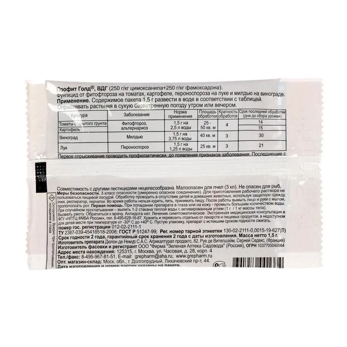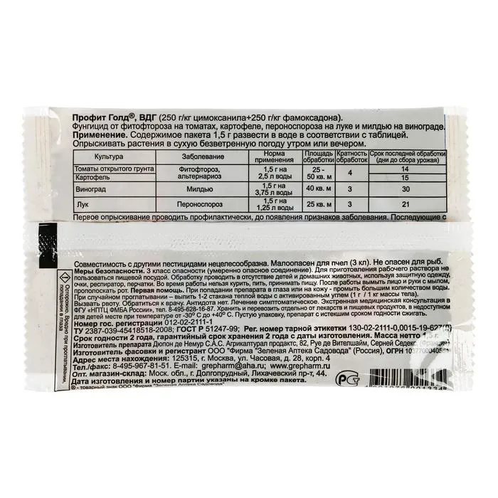 Препарат для защиты растений от заболеваний Профит Голд 1,5 г — Характеристики