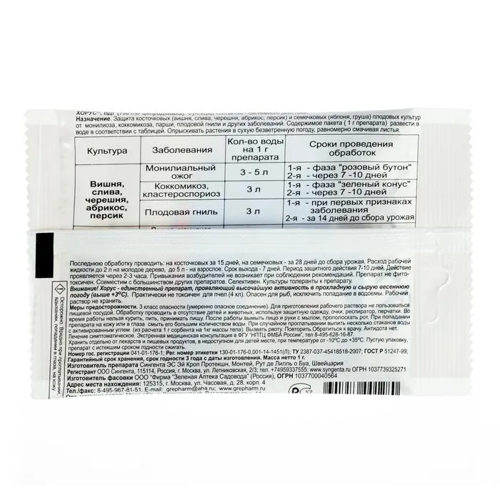 Препарат от основных болезней плодовых культур Хорус 1 г — Характеристики
