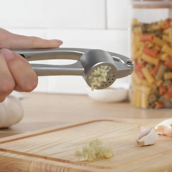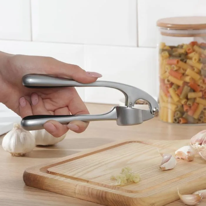 - Удобная ручка позволяет легко управлять прессом и контролировать степень измельчения чеснока.