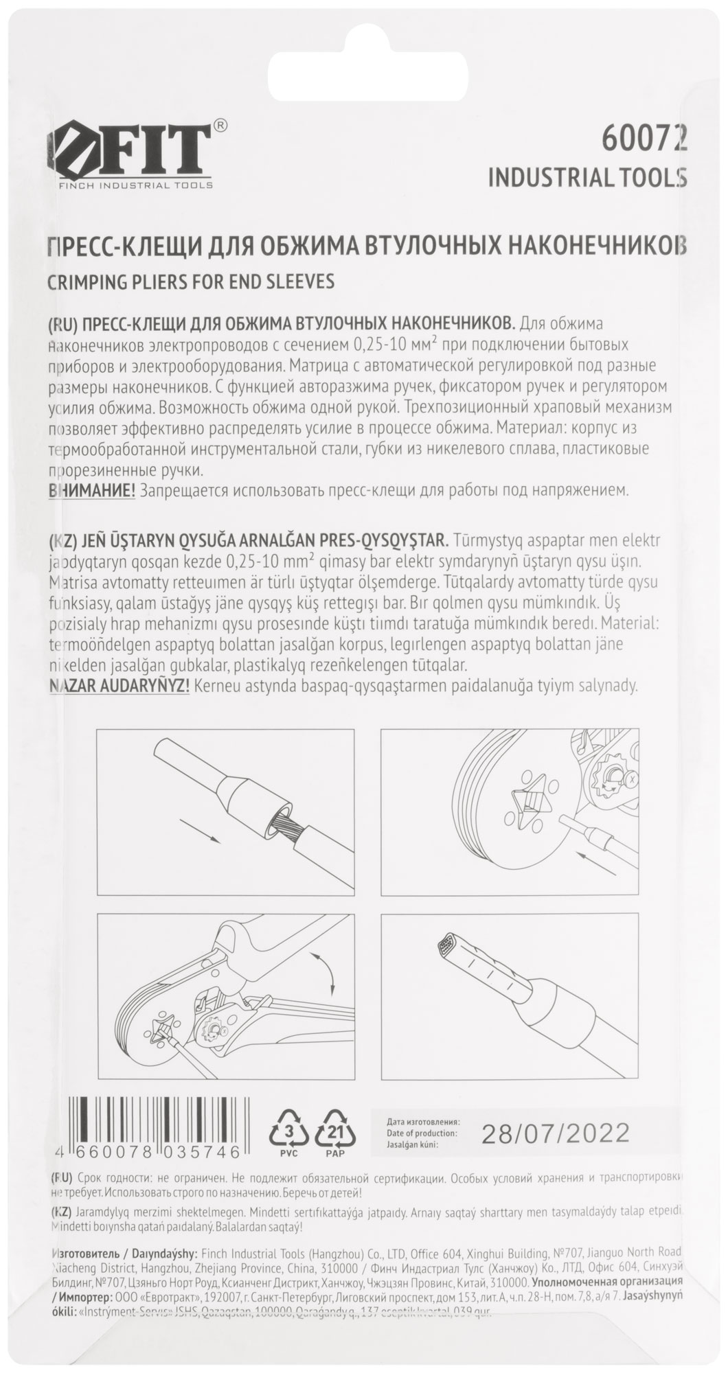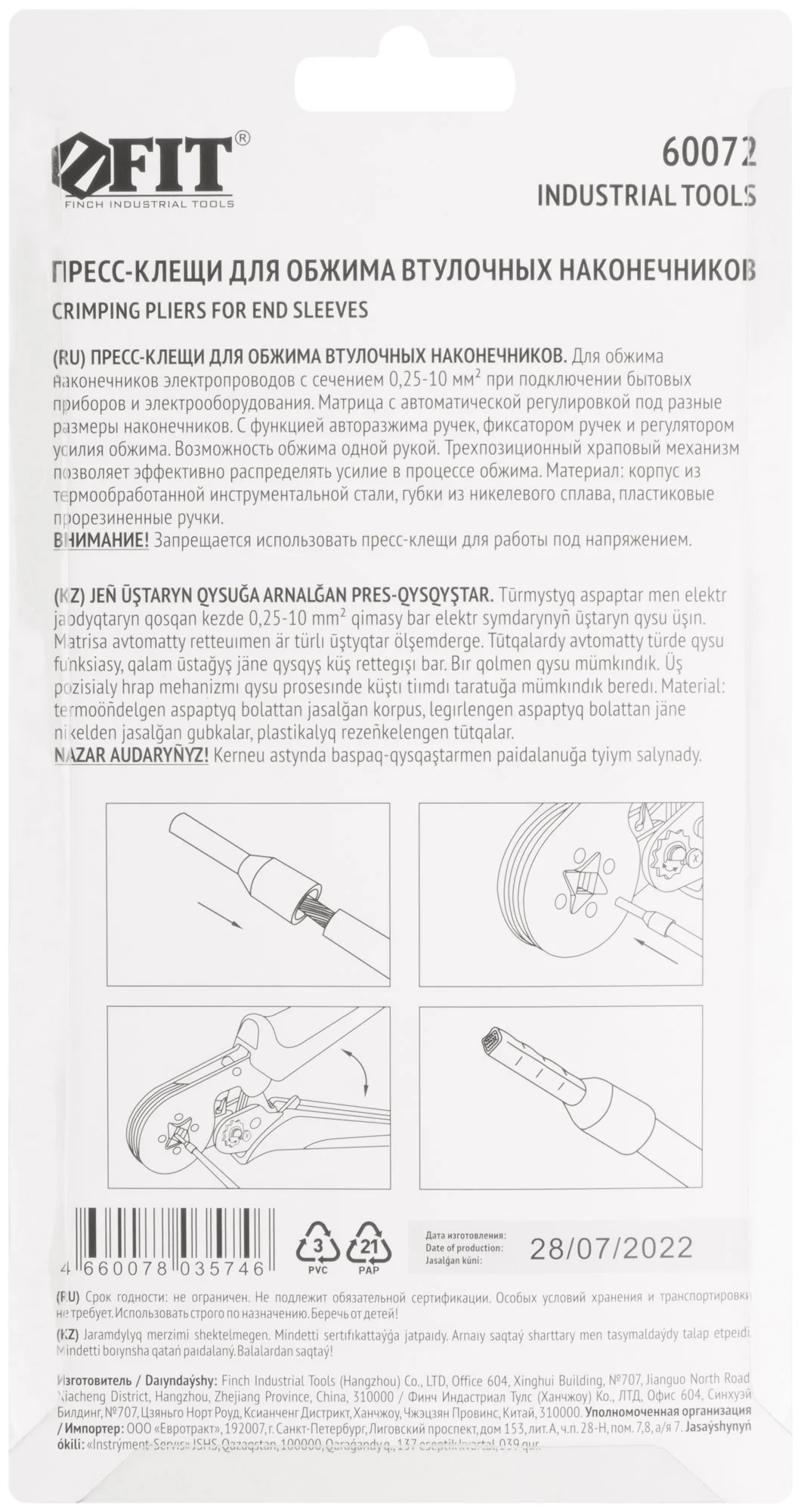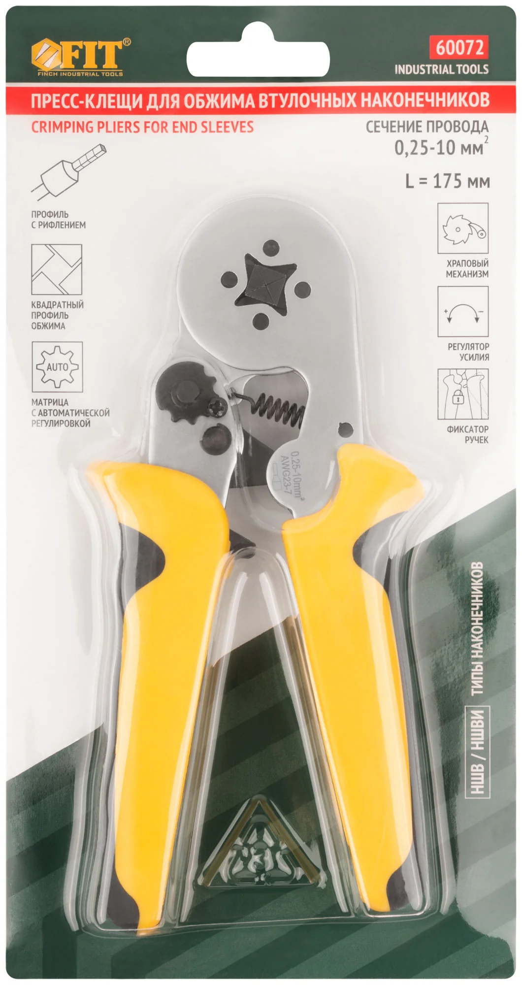 Используйте пресс-клещи FIT для быстрого и надежного обжима втулочных наконечников электропроводов при подключении бытовых приборов и электрооборудования. Это идеальный инструмент для электриков, работающих с проводами сечением от 0,25 до 10 мм².