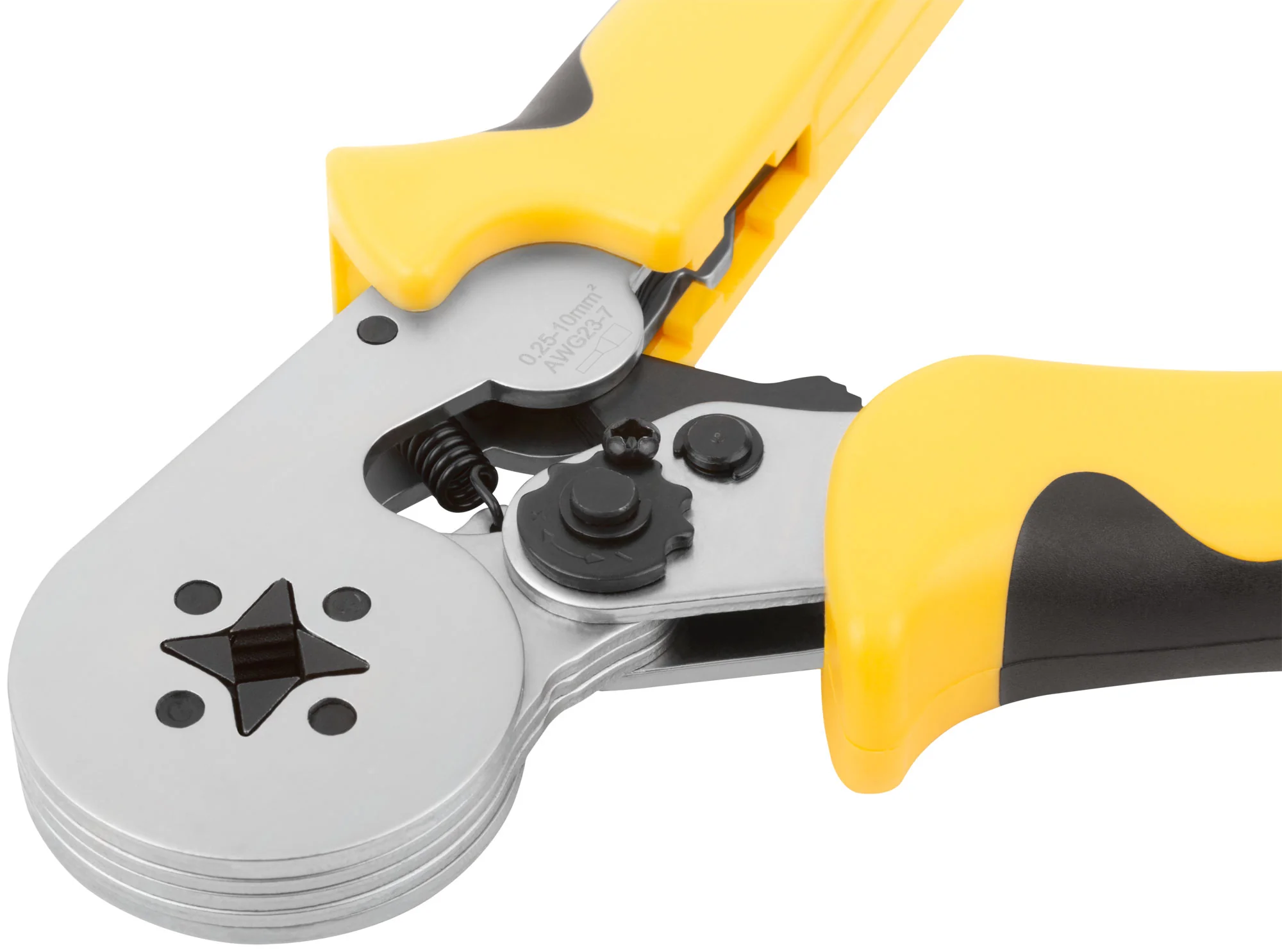 Конструкция пресс-клещей включает матрицу с автоматической регулировкой под разные размеры наконечников и функцию авторазжима ручек. Прорезиненные ручки обеспечивают комфортный захват и удобство в использовании.
