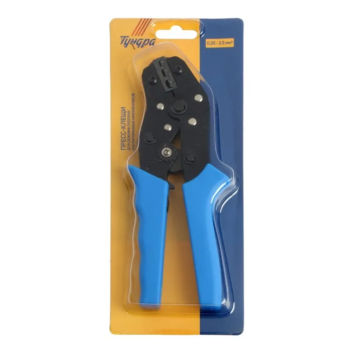 Пресс-клещи ТУНДРА, для обжима плоских изолированных наконечников, 0.25 - 2.5 мм2 — Характеристики