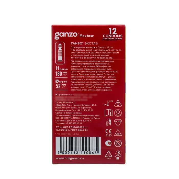 Описание: прозрачные презервативы Ganzo Extase анатомической формы с силиконовой смазкой и накопителем имеют точечную и ребристую поверхность для максимальной стимуляции партнерши. Изготовлены из натурального высококачественного латекса. Проверены с использованием электростатической технологии для большей надежности. Толщина стенки - 0,06 мм. Ширина - 52+/-2 мм. В упаковке - 12 шт.