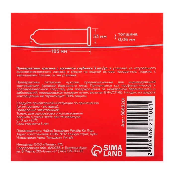 Ароматизированные презервативы – это еще один плюс нашего товара. Они имеют нежный и приятный запах клубники, которые добавят новые ощущения в вашу интимную жизнь. Ароматизированные презервативы создадут особую романтическую атмосферу и помогут вам насладиться каждым моментом.