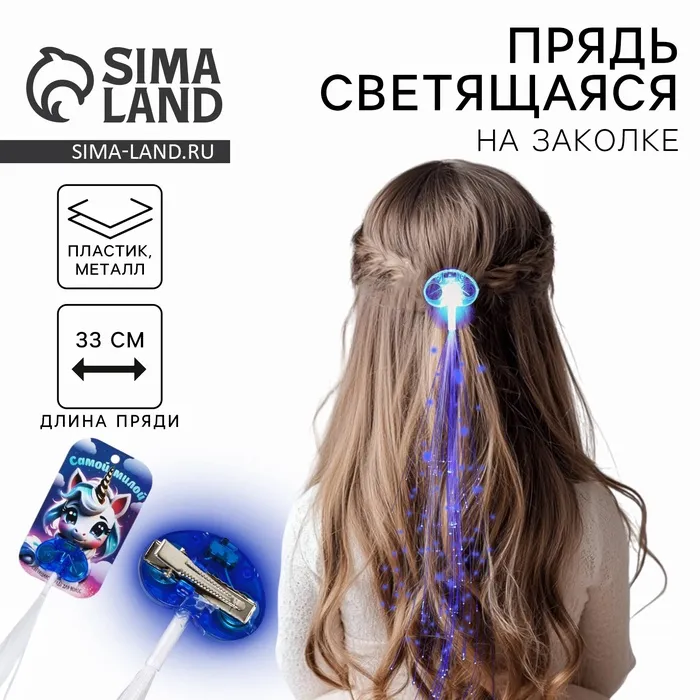 Прядь для волос на заколке, светящаяся, 3.5×33 см — Характеристики