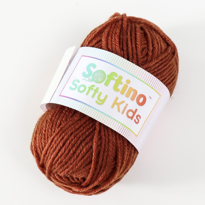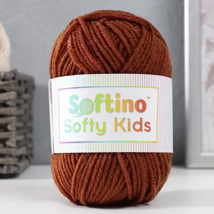 Пряжа для вязания спицами, крючком 100% акрил Softino Softy Kids, 90 м ±5 м, 50 г, горькая, шоколад — Характеристики
