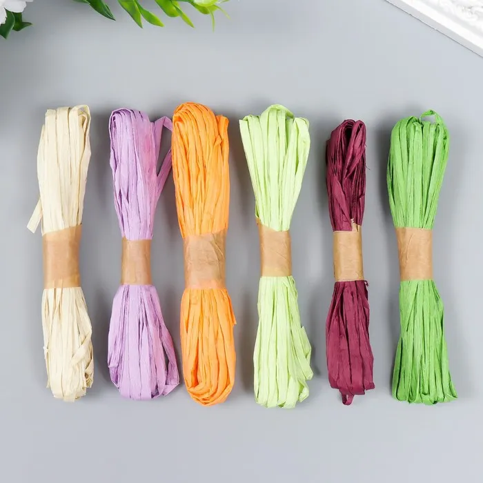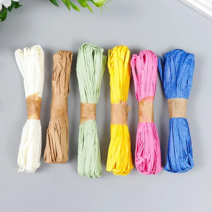 Пряжа для вязания спицами, крючком 100% целлюлоза «Рафия», набор 12 шт., 10 м, 22×14 см, МИКС — Характеристики