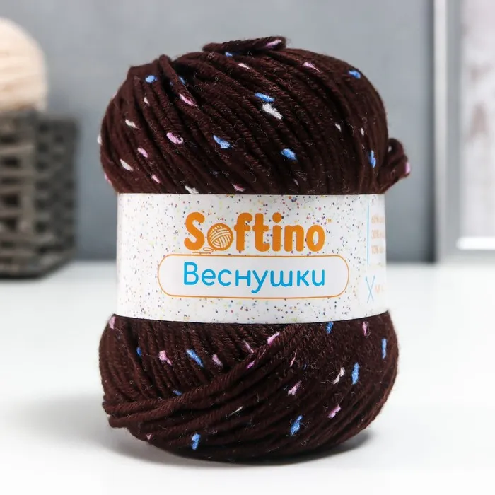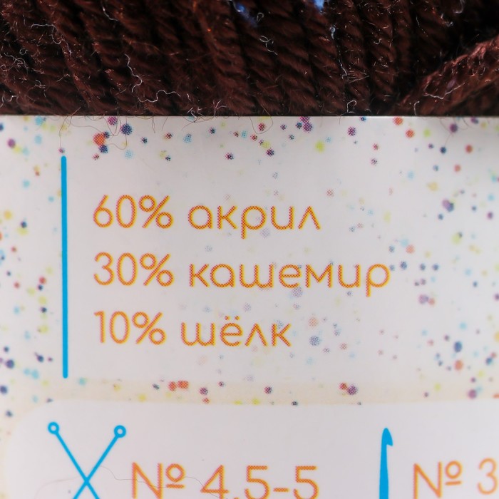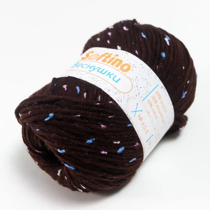 Пряжа для вязания спицами, крючком 60% акрил, 30% кашемир, 10% шёлк Softino «Веснушки», 50 г, 80 м, цвет 17 А шоколад — Характеристики