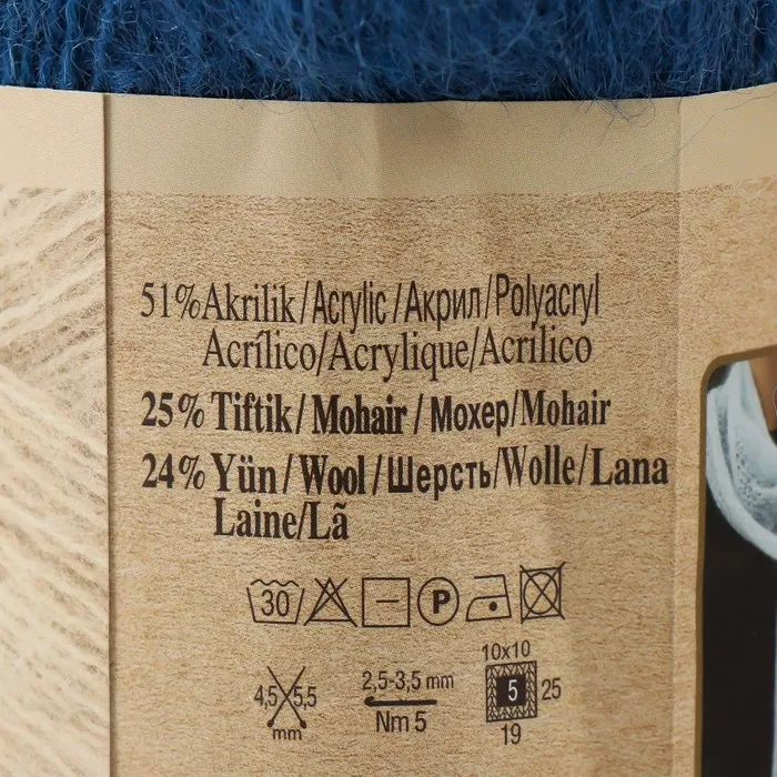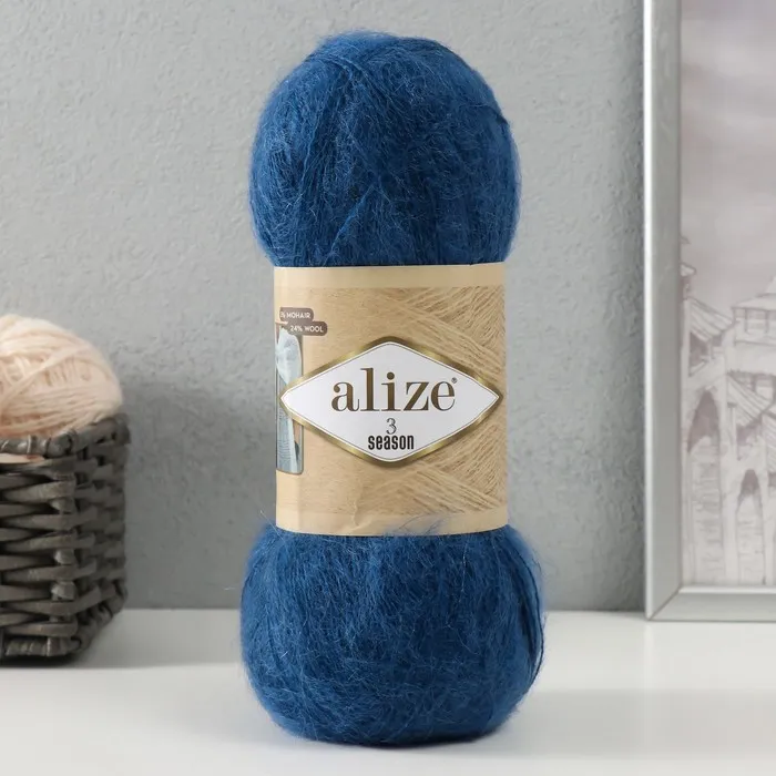 Пряжа для вязания спицами, крючком ALIZE, 3 Season, 51% акрил, 25% мохер, 24% шерсть, 500 м/100 г, (409 василёк) — Характеристики