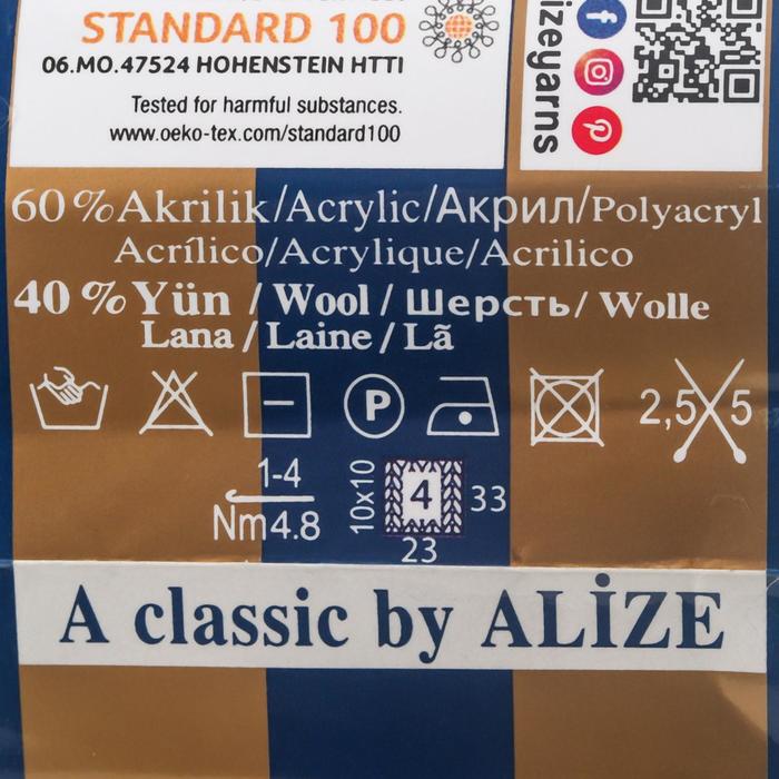 Пряжа для вязания спицами, крючком ALIZE, Angora real 40, 60% акрил, 40% шерсть, 430 м/100 г, (522) — Характеристики