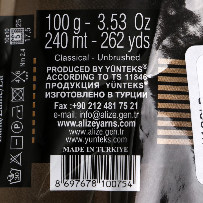 Пряжа для вязания спицами, крючком ALIZE, Lanagold, 51% акрил, 49% шерсть, 240 м/100 г, (180 серебряная сосна) — Характеристики