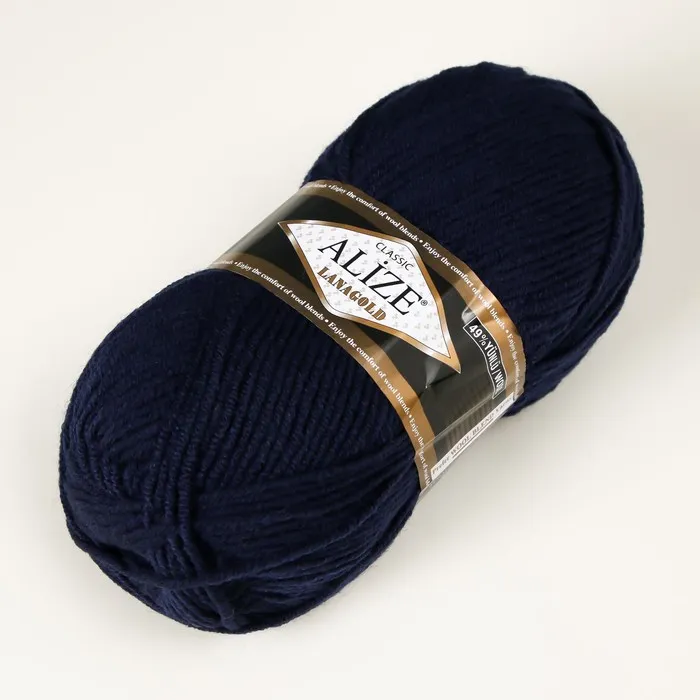 Пряжа для вязания спицами, крючком ALIZE, Lanagold, 51% акрил, 49% шерсть, 240 м/100 г, (58 т. синий) — Характеристики