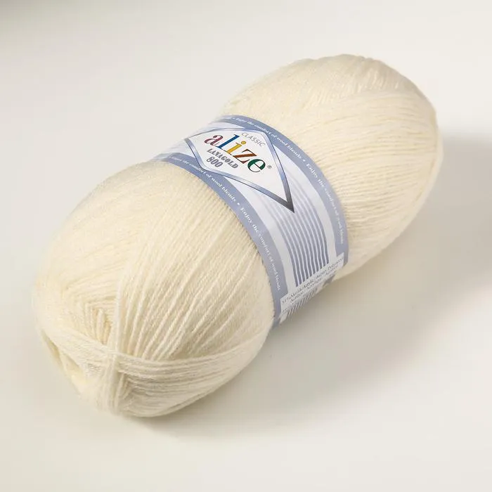 Пряжа для вязания спицами, крючком ALIZE, Lanagold 800, 49% шерсть, 51% акрил, 730 м/100 г, (62 молочный) — Характеристики