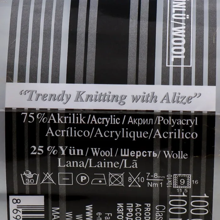 Пряжа для вязания спицами, крючком ALIZE, Superlana Maxi, 75% акрил, 25% шерсть, 100 м/100 г, (02) — Характеристики