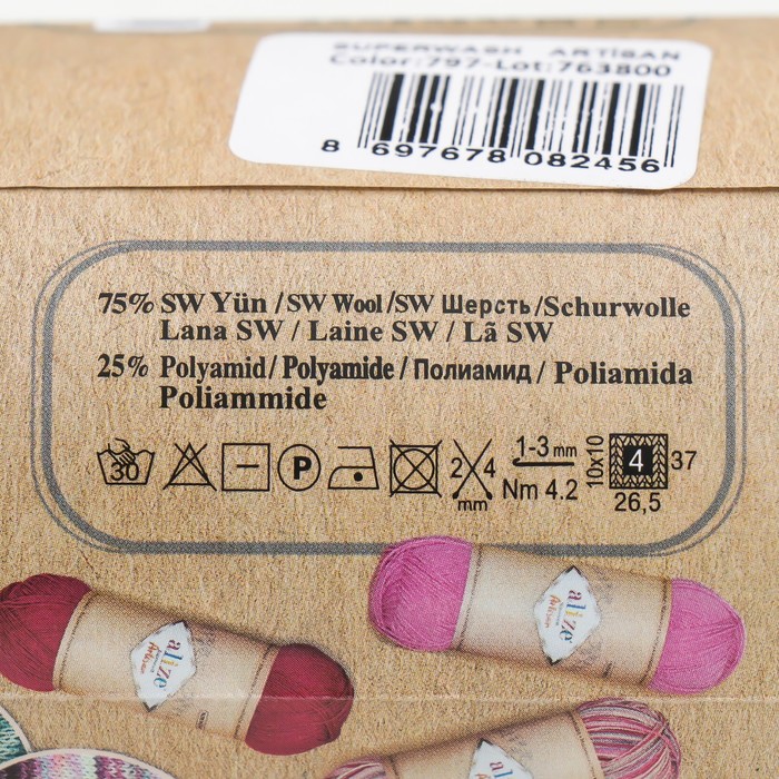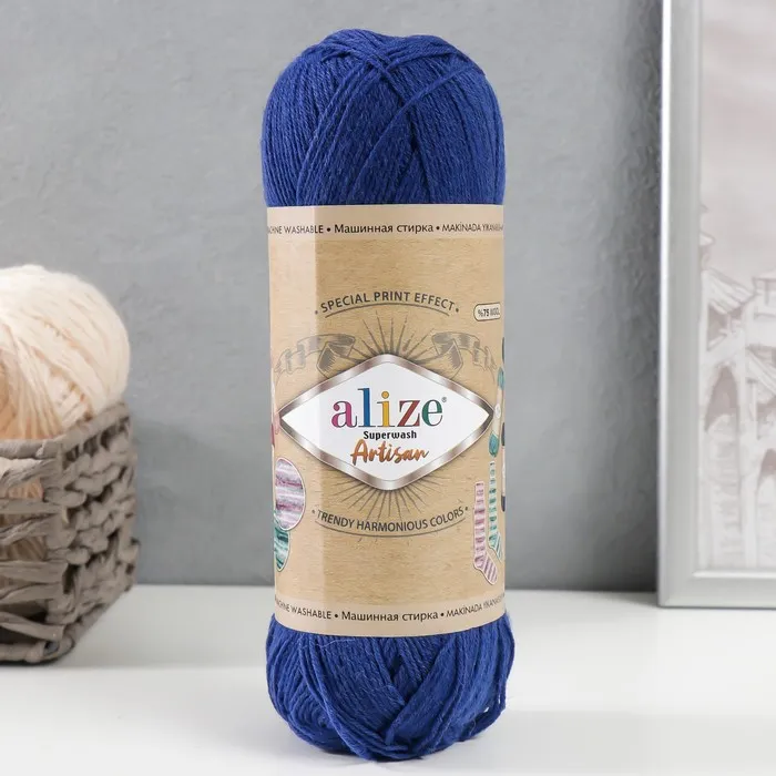 Пряжа для вязания спицами, крючком ALIZE, Superwash Artisan, 75% шерсть, 25% полиамид, 420 м/100 г, (797 т. синий) — Характеристики