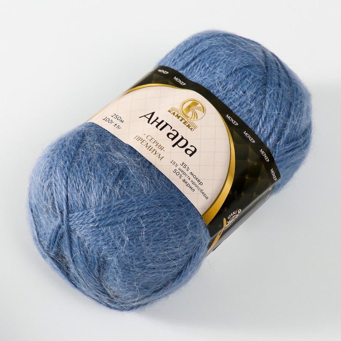 Пряжа для вязания спицами, крючком «Камтекс. Ангара», 35% мохер, 15% шерсть, 50% акрил, 250 м/100 г, (022 джинса) — Характеристики