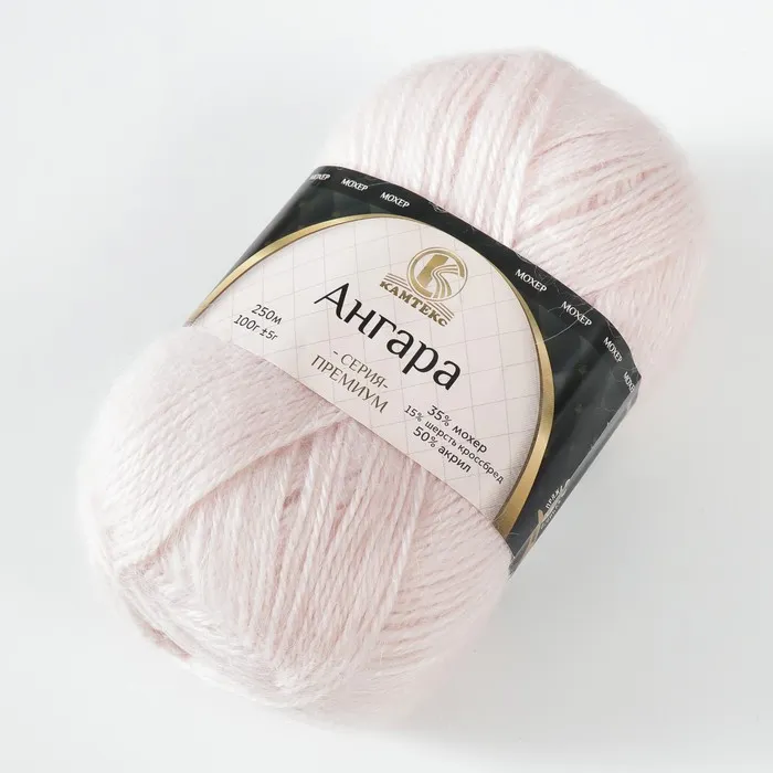 Пряжа для вязания спицами, крючком «Камтекс. Ангара», 35% мохер, 15% шерсть, 50% акрил, 250 м/100 г, (143 нежный румянец) — Характеристики