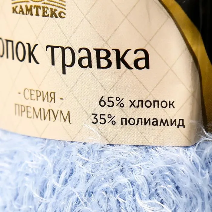 Пряжа для вязания спицами, крючком «Камтекс. Хлопок травка», травка, 65% хлопок, 35% полиамид, 220 м/100 г, (015 голубой) — Характеристики