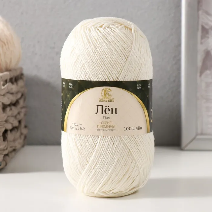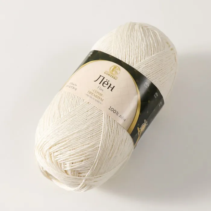 Пряжа для вязания спицами, крючком «Камтекс. Лён», 100% лён, 330м/100 г, (205 белый) — Характеристики