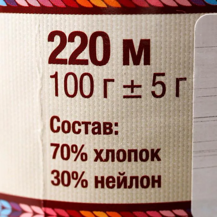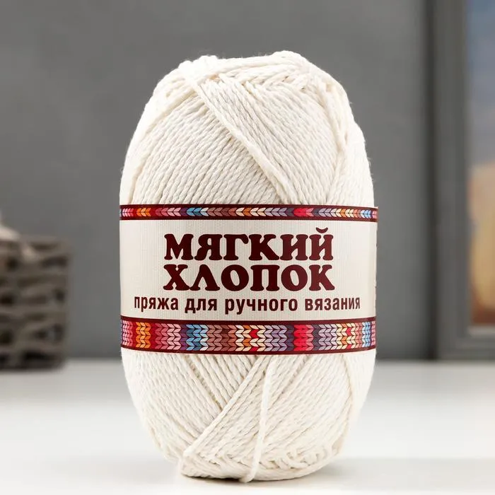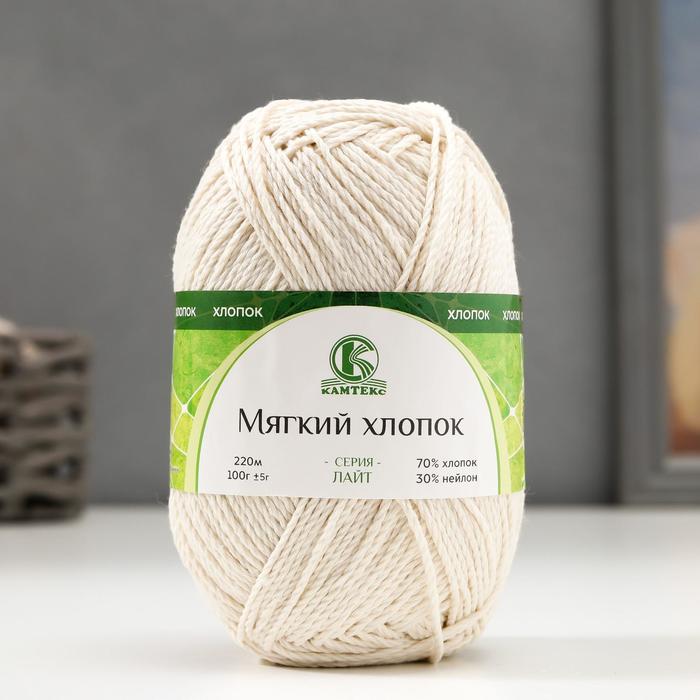Пряжа для вязания спицами, крючком «Камтекс. Мягкий хлопок», 70% хлопок, 30% нейлон, 220 м/100 г, (205 белый) — Характеристики