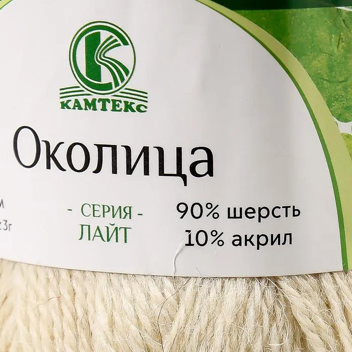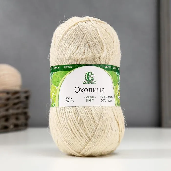 Пряжа для вязания спицами, крючком «Камтекс. Околица», 90% шерсть, 10% акрил, 250 м/100 г, (001 суровый) — Характеристики