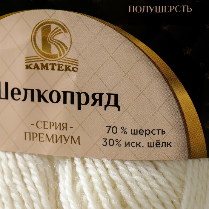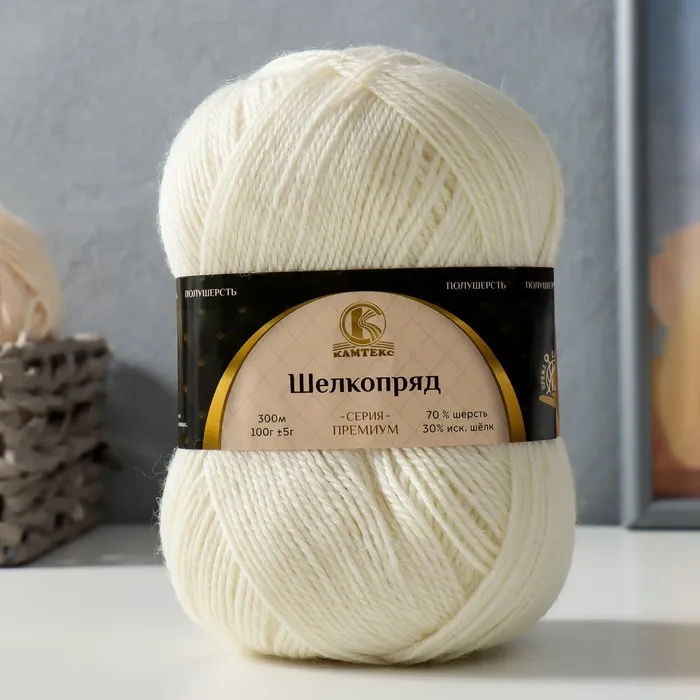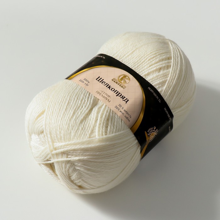Пряжа для вязания спицами, крючком «Камтекс. Шелкопряд», 70% шерсть, 30% искусственный шелк, 300 м/100 г, (205 белый) — Характеристики