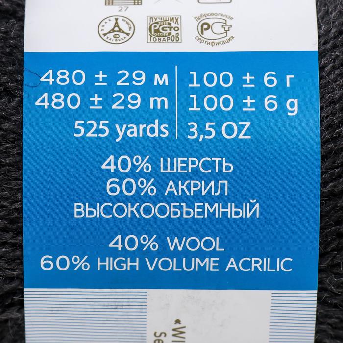 Пряжа для вязания спицами, крючком «Пехорский текстиль. Ангорская тёплая», 40% шерсть, 60% акрил, 480 м/100 г, (435 антрацит) — Характеристики