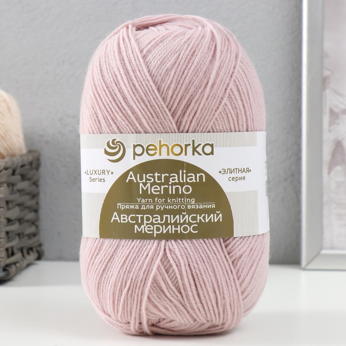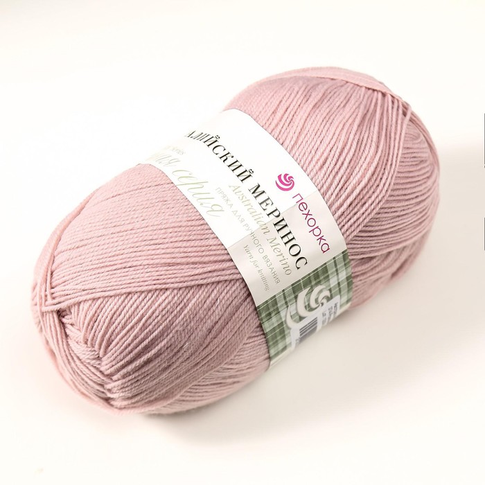 Пряжа для вязания спицами, крючком «Пехорский текстиль. Австралийский меринос», 95% мериносовая шерсть, 5% акрил объёмный, 400 м/100 г, (374 розовый беж) — Характеристики
