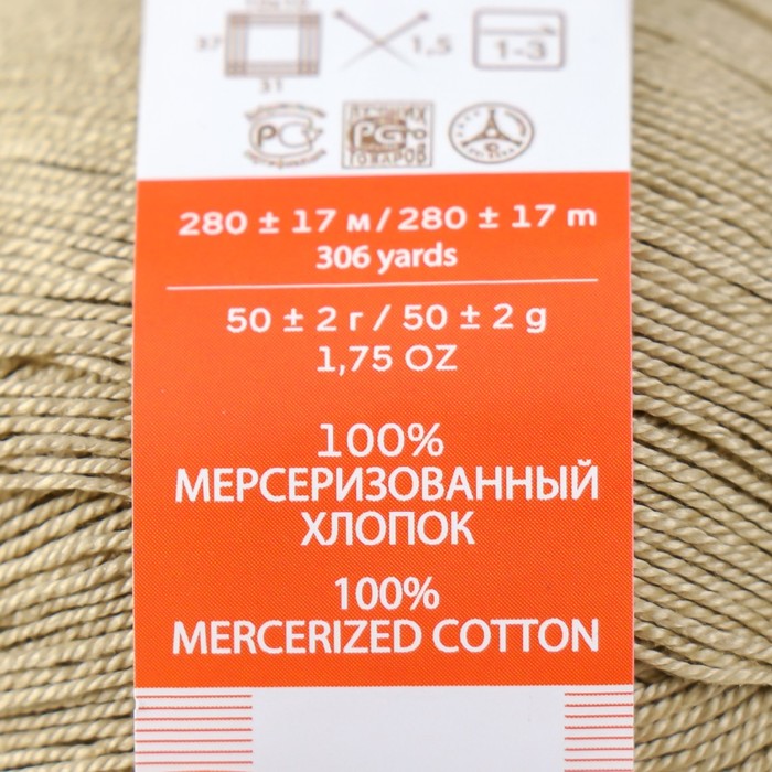 Пряжа для вязания спицами, крючком «Пехорский текстиль. Ажурная», 100% мерсеризованный хлопок, 280 м/50 г, (478 защитный) — Характеристики
