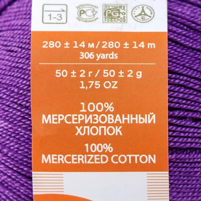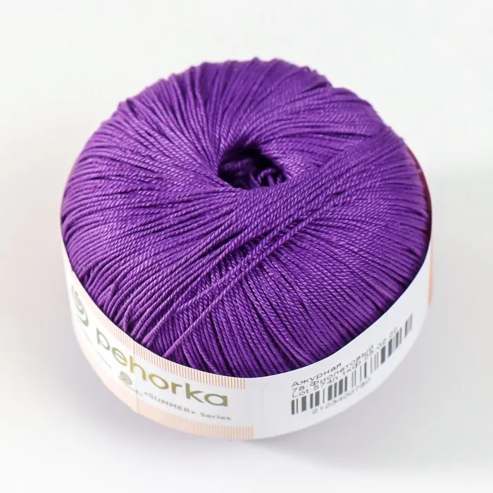 Пряжа для вязания спицами, крючком «Пехорский текстиль. Ажурная», 100% мерсеризованный хлопок, 280 м/50 г, (78 фиолетовый) — Характеристики