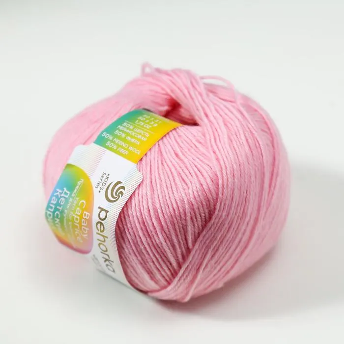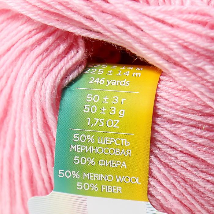 Пряжа для вязания спицами, крючком «Пехорский текстиль. Детский каприз», 50% мериносовая шерсть, 50% фибра, 225 м/50 г, (180 св. бегония) — Характеристики