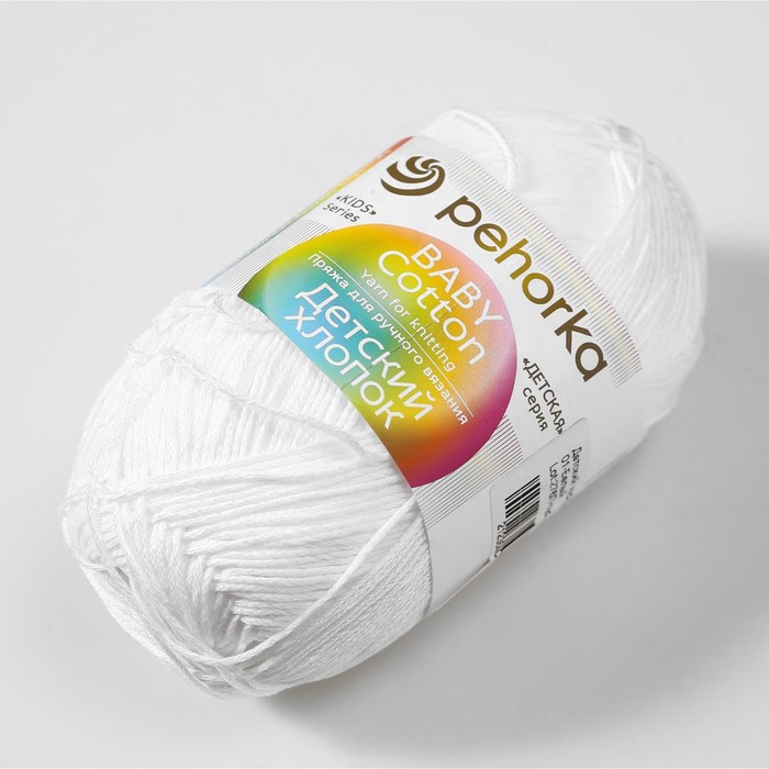 Пряжа для вязания спицами, крючком «Пехорский текстиль. Детский хлопок», 100% мерсеризованный хлопок, 330 м/100 г, (01 белый) — Характеристики
