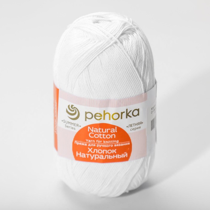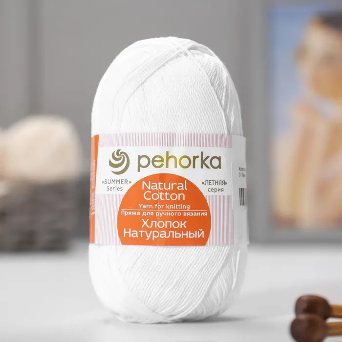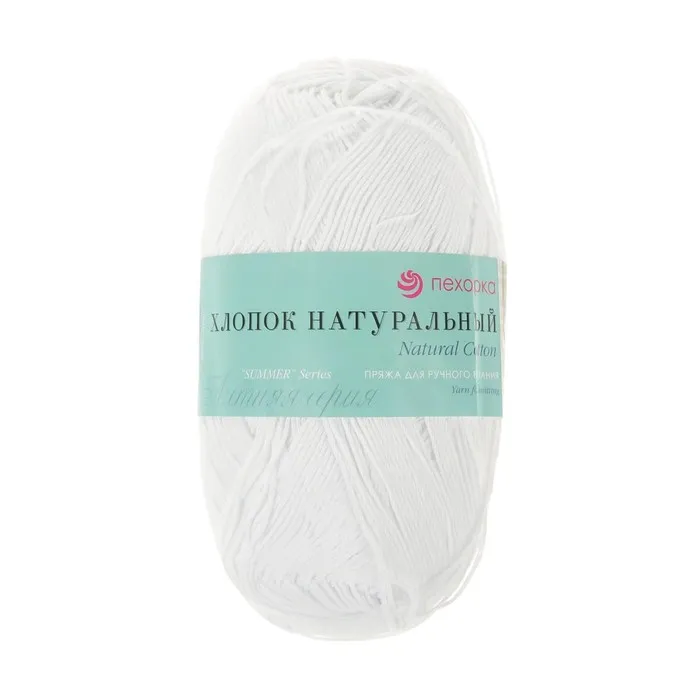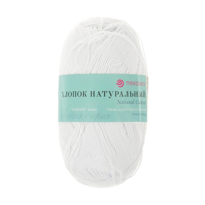 Пряжа для вязания спицами, крючком «Пехорский текстиль. хлопок, натуральный», 100% хлопок, 425 м/100 г, (01 белый) — Характеристики