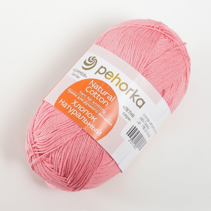 Пряжа для вязания спицами, крючком «Пехорский текстиль. хлопок, натуральный», 100% хлопок, 425 м/100 г, (283 лосось) — Характеристики