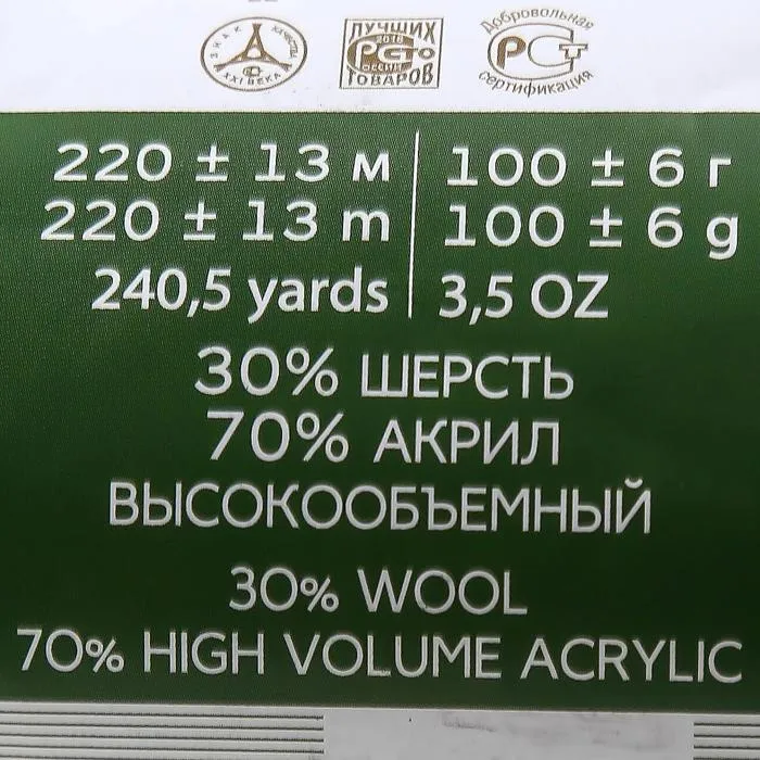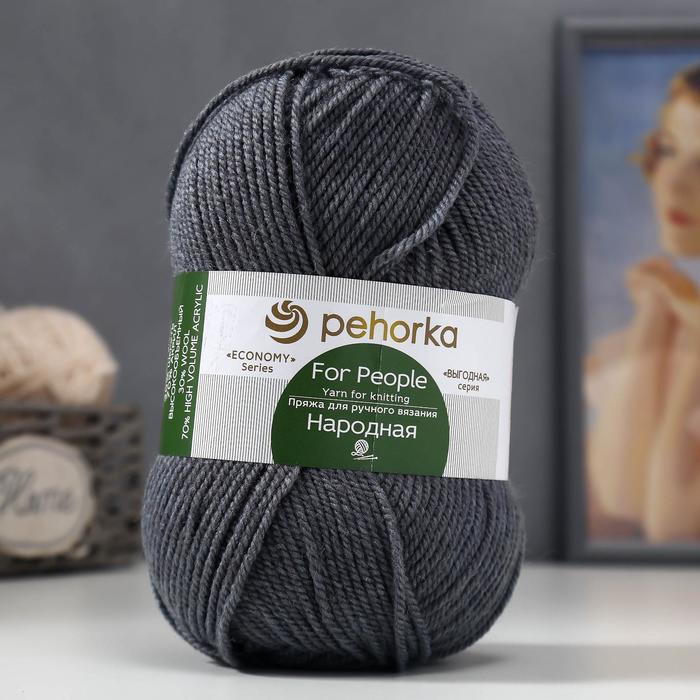 Пряжа для вязания спицами, крючком «Пехорский текстиль. Народная», 30% шерсть, 70% акрил объёмный, 220 м/100 г, (393 св. маренго) — Характеристики