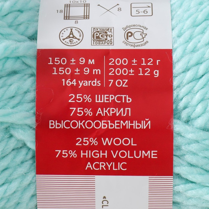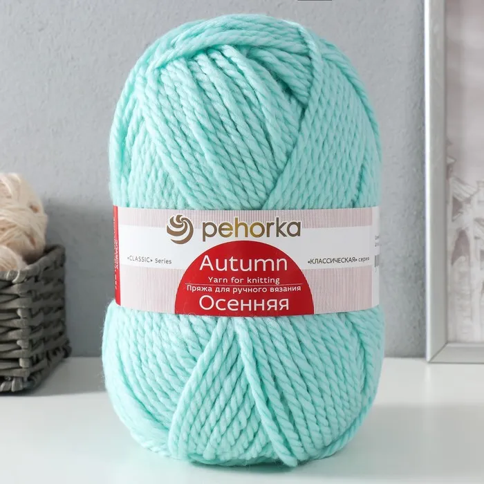 Пряжа для вязания спицами, крючком «Пехорский текстиль. Осенняя», 25% шерсть, 75% акрил высокообъемный, 150 м/200г, (222 голубая бирюза) — Характеристики
