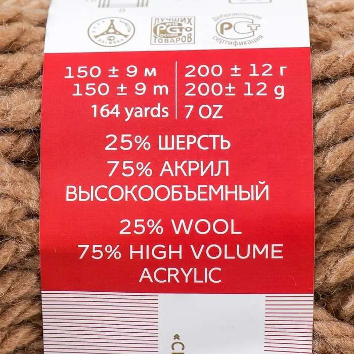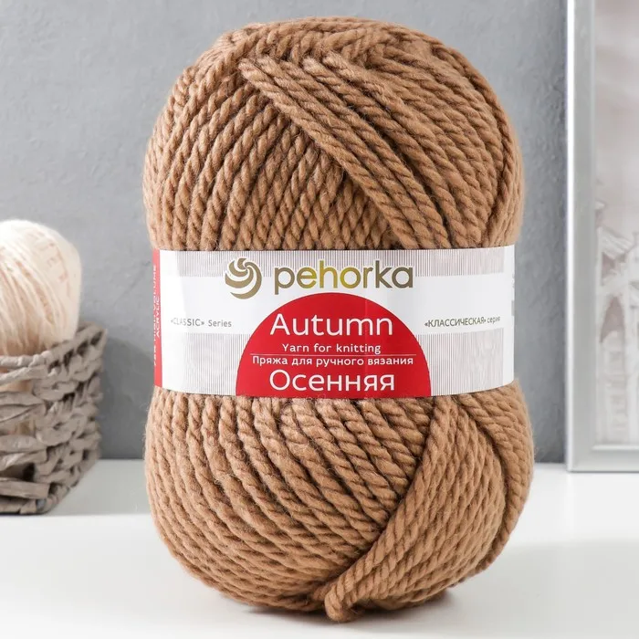 Пряжа для вязания спицами, крючком «Пехорский текстиль. Осенняя», 25% шерсть, 75% ПАН, 150 м/200г, (412 верблюжий) — Характеристики