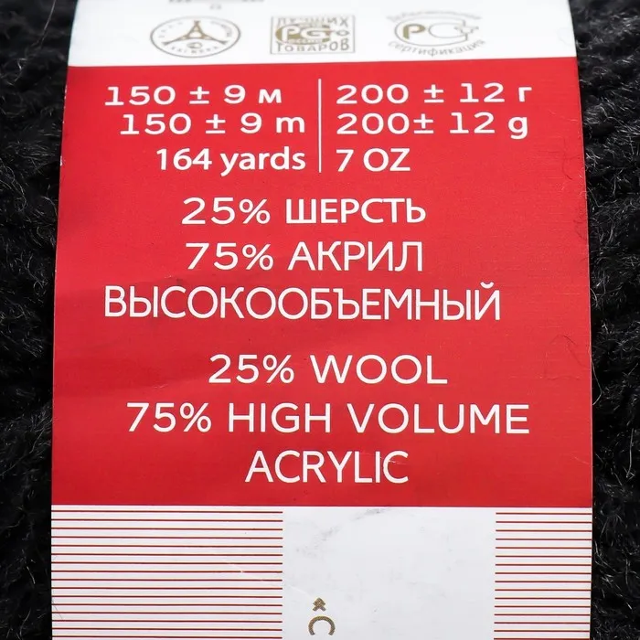 Пряжа для вязания спицами, крючком «Пехорский текстиль. Осенняя», 25% шерсть, 75% ПАН, 150 м/200г, (435 антрацит) — Характеристики