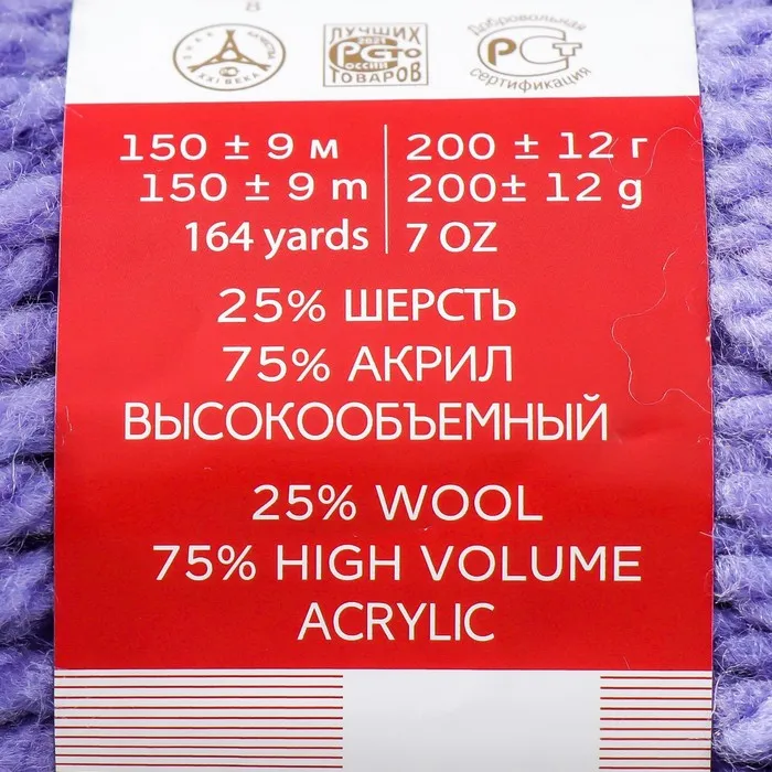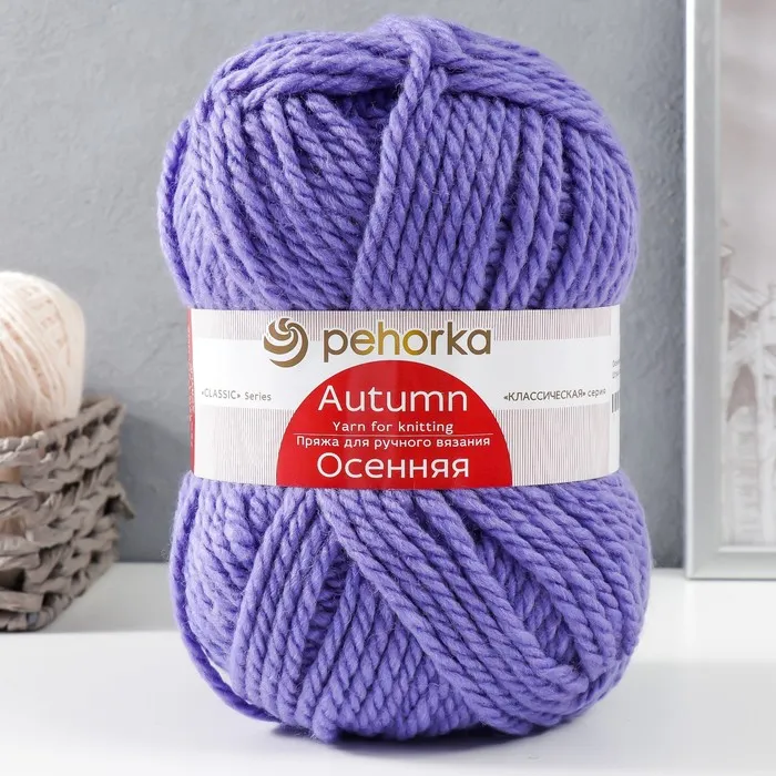 Пряжа для вязания спицами, крючком «Пехорский текстиль. Осенняя»,25% шерсть, 75% ПАН, 150 м/200г, (496 яр. сирень) — Характеристики