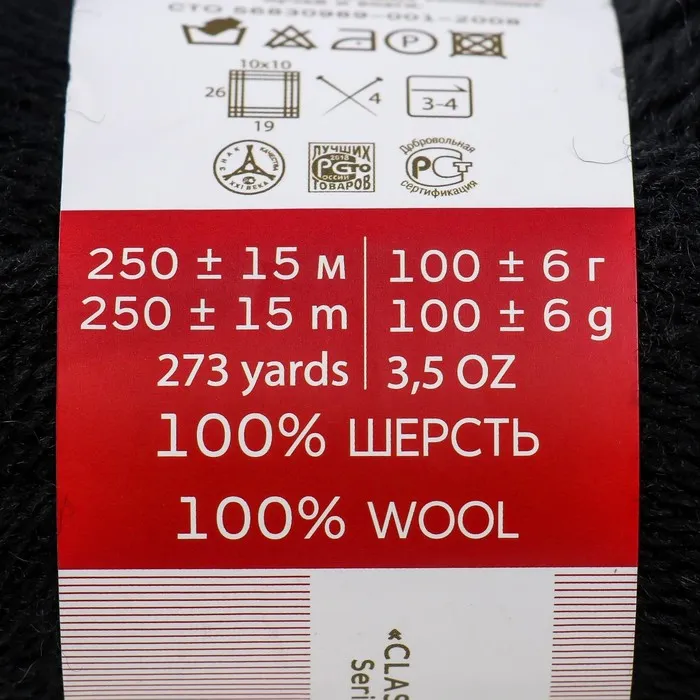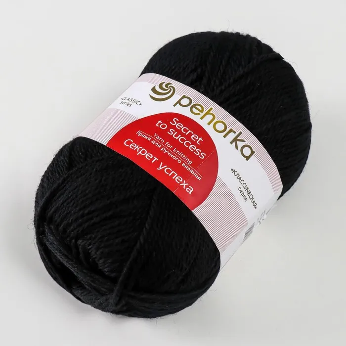 Пряжа для вязания спицами, крючком «Пехорский текстиль. Секрет успеха», 100% шерсть, 250 м/100 г, (02 чёрный) — Характеристики