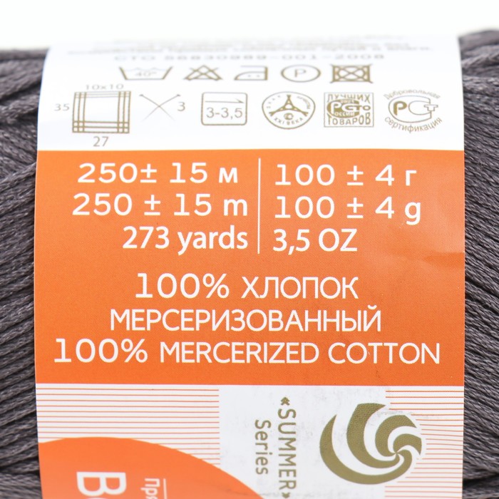 Пряжа для вязания спицами, крючком «Пехорский текстиль. Весенняя», 100% мерсеризованный хлопок, 250 м/100 г, (35 маренго) — Характеристики