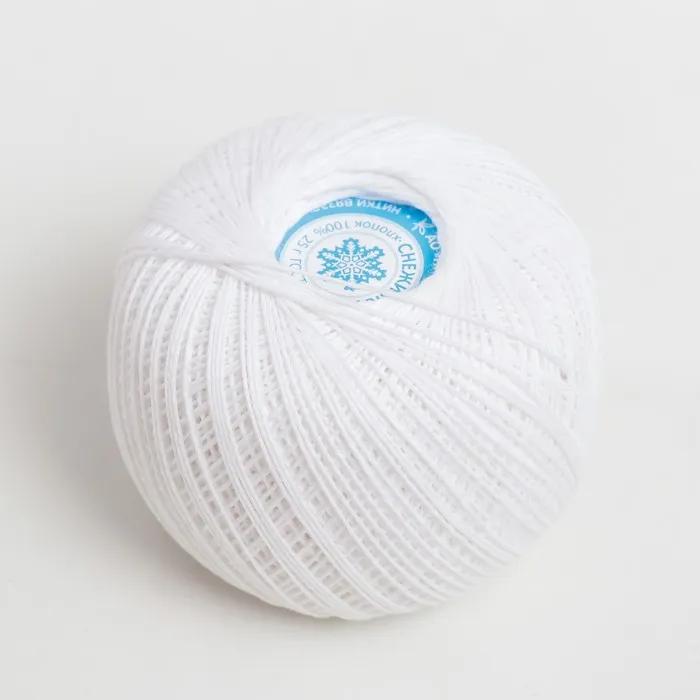 Хлопковая нить — то, чему будет рада любая хозяйка! Она отлично подходит для создания различных аксессуаров для интерьера, вроде салфеток или скатёрок. Хотя опытные рукодельницы умудряются связать даже лёгкие юбки или накидки. Петли ложатся идеально ровно, изделие получается мягким и приятным на ощупь. Пряжа для вязания спицами, крючком «ПНК Кирова. Снежинка», 230 м/25 г, 100% хлопок (0101 белый) — то, что нужно при вязке крючком или плетении кружева.