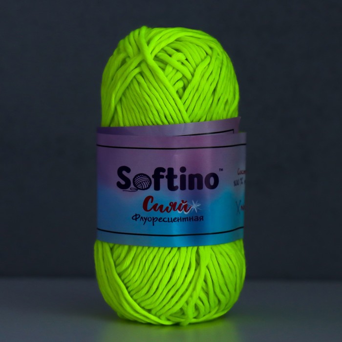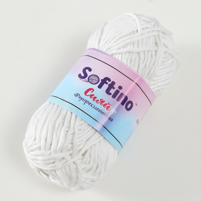 Пряжа для вязания спицами, крючком светящаяся 100% лавсан Softino «Сияй», 50 г, 50 м, белая — Характеристики