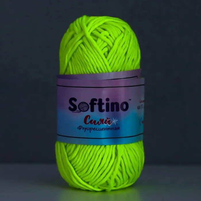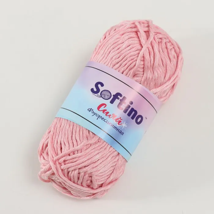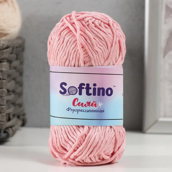 Пряжа для вязания спицами, крючком светящаяся 100% лавсан Softino «Сияй», 50 г, 50 м, розовая — Характеристики