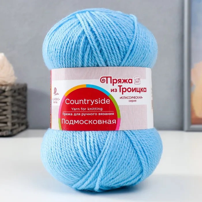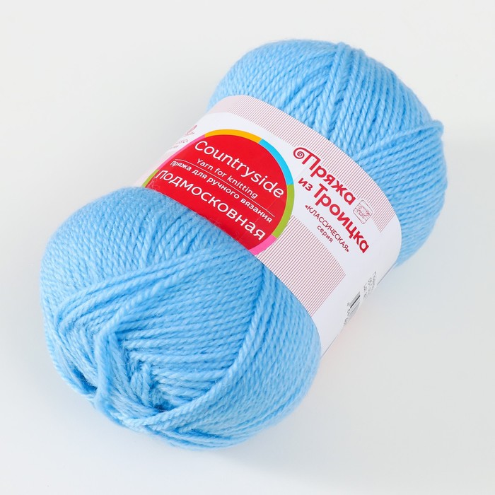 Пряжа для вязания спицами, крючком «Троицкая. Подмосковная», 50% шерсть, 50% акрил, 250 м/100 г, (05 голубой) — Характеристики