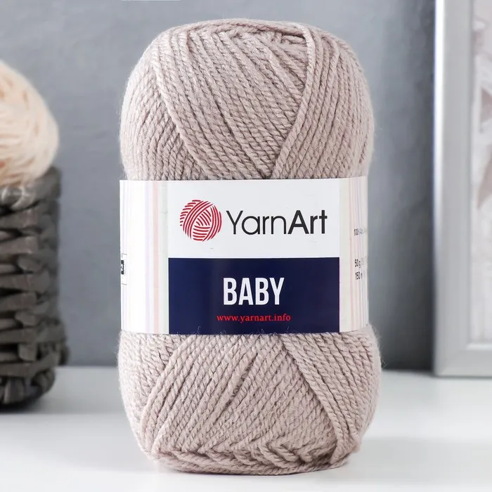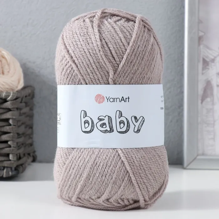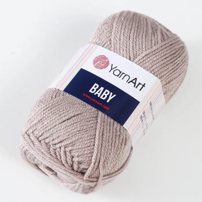 Пряжа для вязания спицами, крючком YarnArt, Baby, 100% акрил, 150 м/50 г, (857 серо-бежевый) — Характеристики