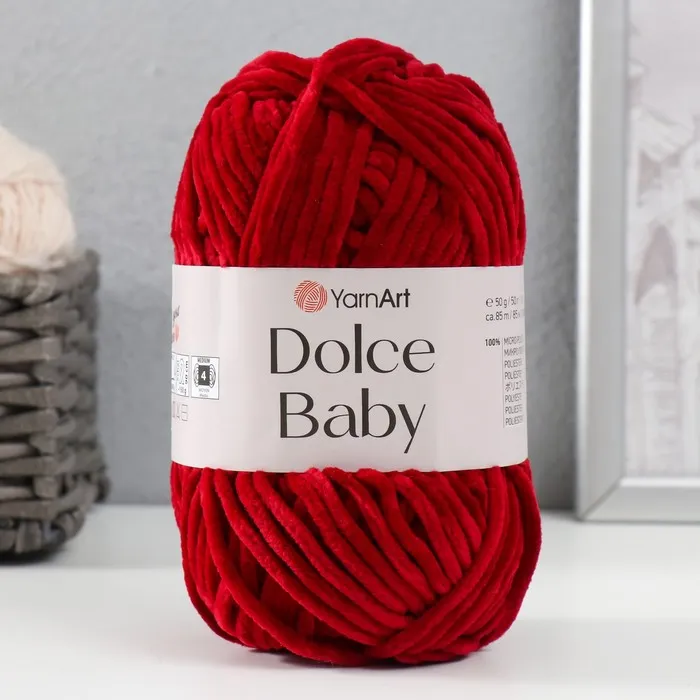 Пряжа для вязания спицами, крючком YarnArt, Dolce Baby, 100% микрополиэстер, 85 м/50 г, (752 вишня) — Характеристики